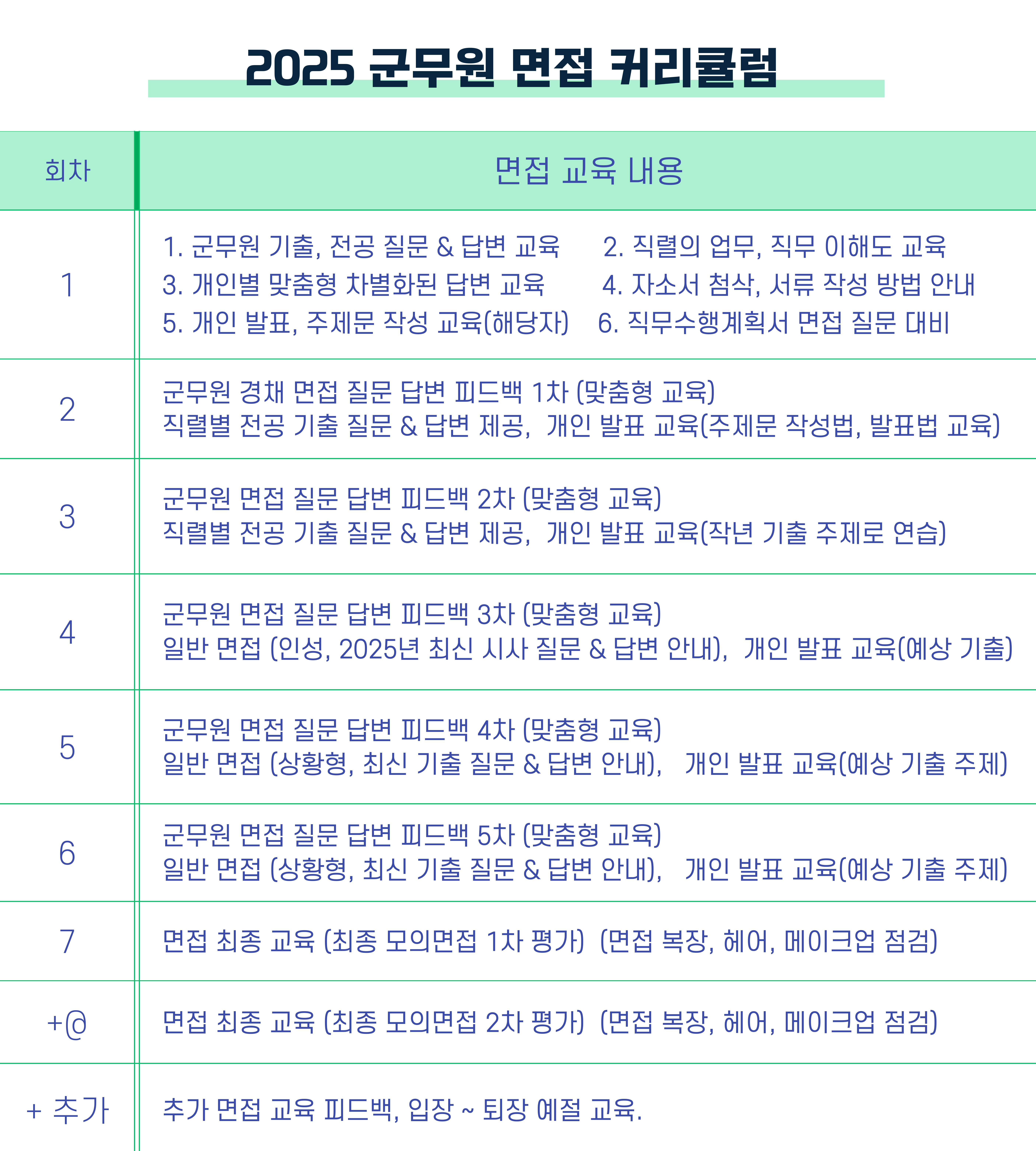 본인 실제 면접일에 맞추어 교육 일정은 편성됩니다.