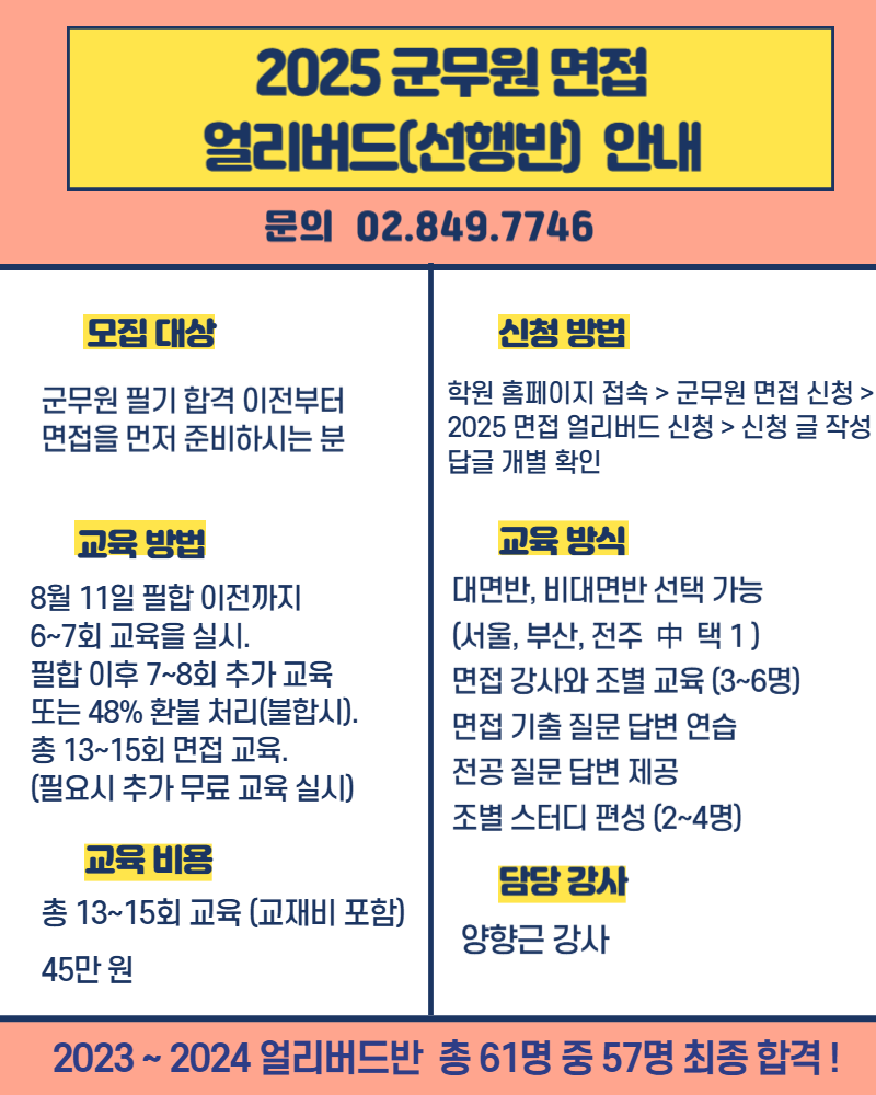 군무원 면접 얼리버드반 서울 지역 안내입니다.